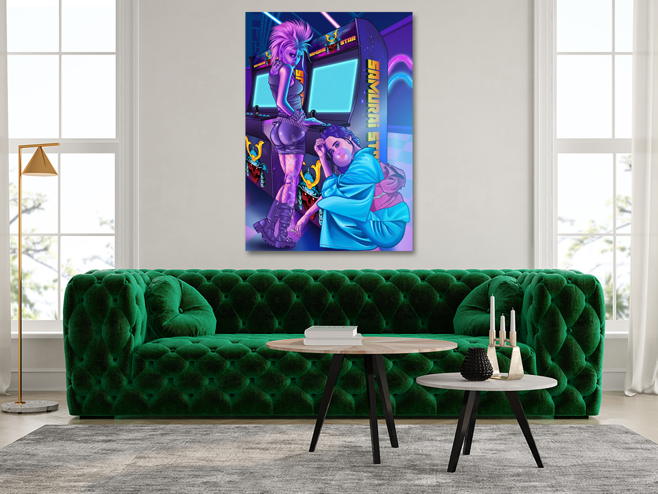 Modern take on the Femme Fatale characters. Set in an 80's style arcade these two bad girls come from different worlds but are aligned in their attitudes.